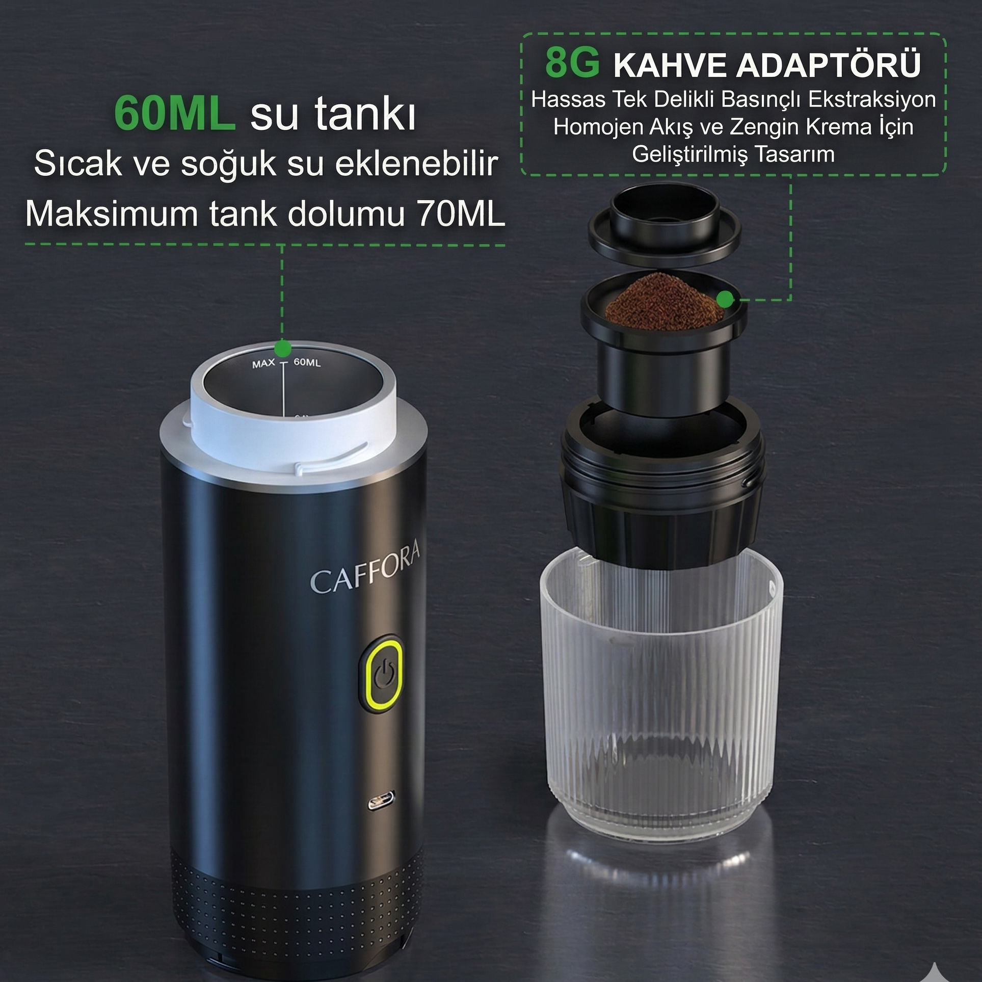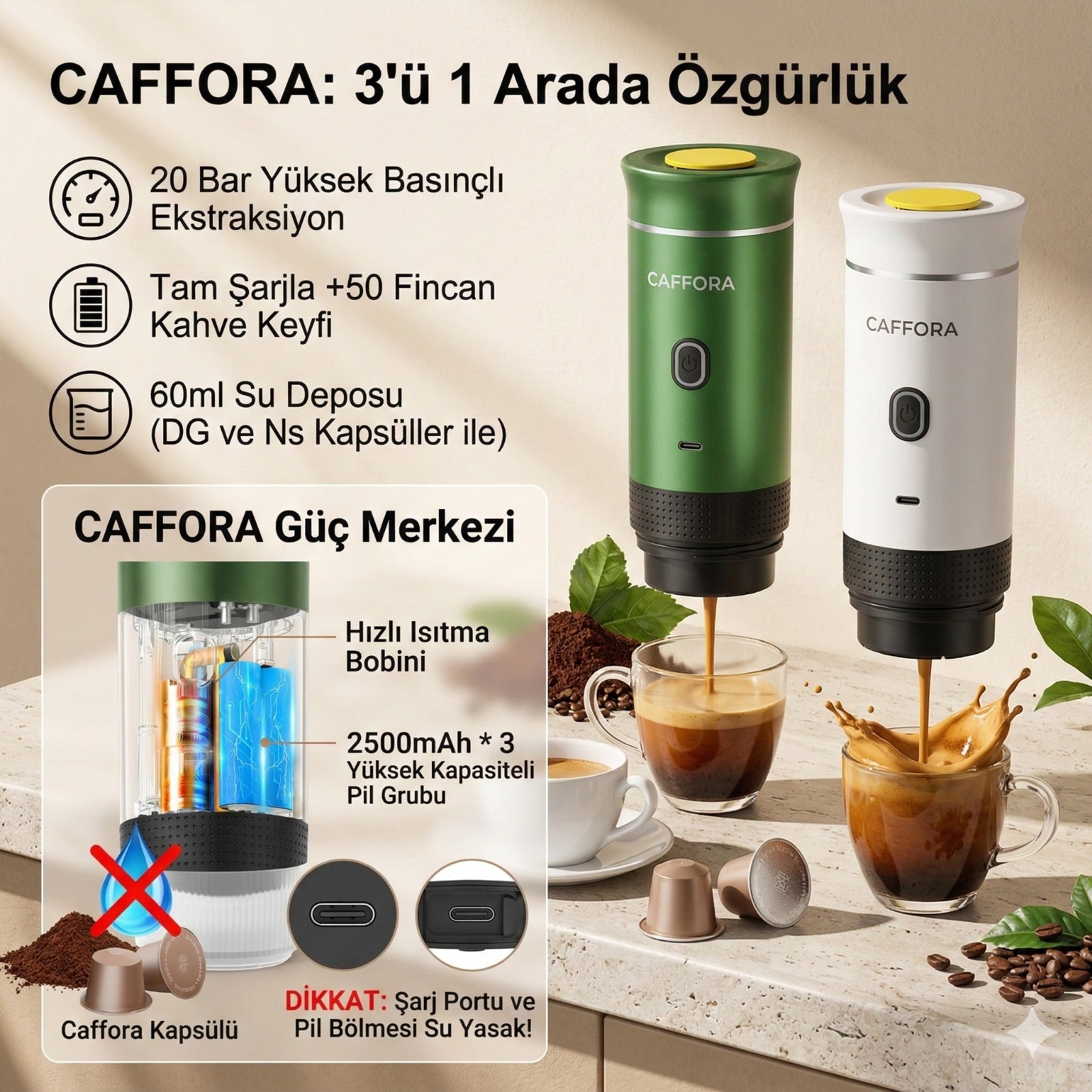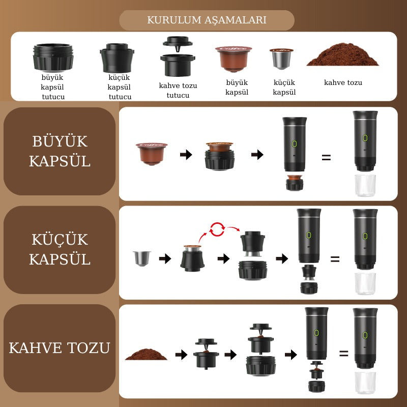 Taşınabilir kahve makineniz ile kahvenizi istediğiniz şekilde hazırlayabilirsiniz.
